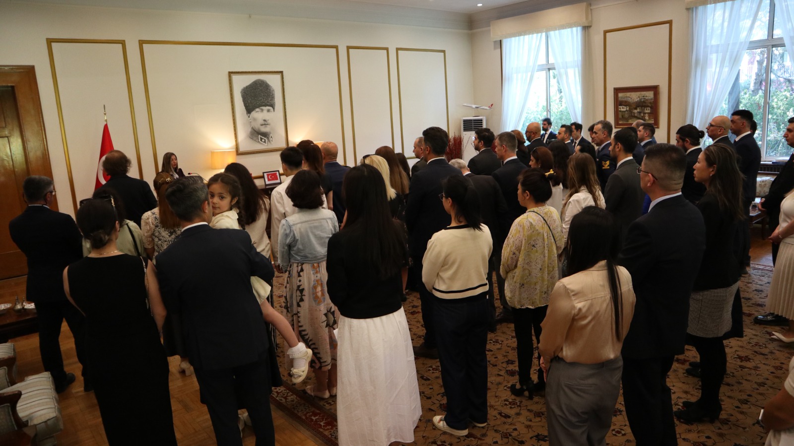 Büyükelçilik personeli ve Çin'deki Türk kurumlarının temsilcilerinin katıldığı törende, İstiklal Marşı'nın okunmasının ardından saygı duruşunda bulunuldu.
