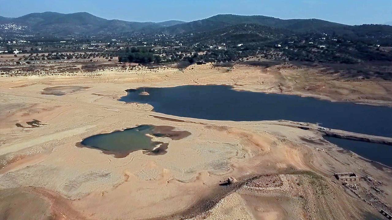 Mumcular Barajı içerisindeki eski kiremit fabrikasının kalıntılarının bir bölümü suyun azalmasıyla yüzeye çıktı. Kuraklığın boyutu, drone ile görüntülendi. Barajda ortaya çıkan geniş çamur alanları da görüntülerde yer aldı.