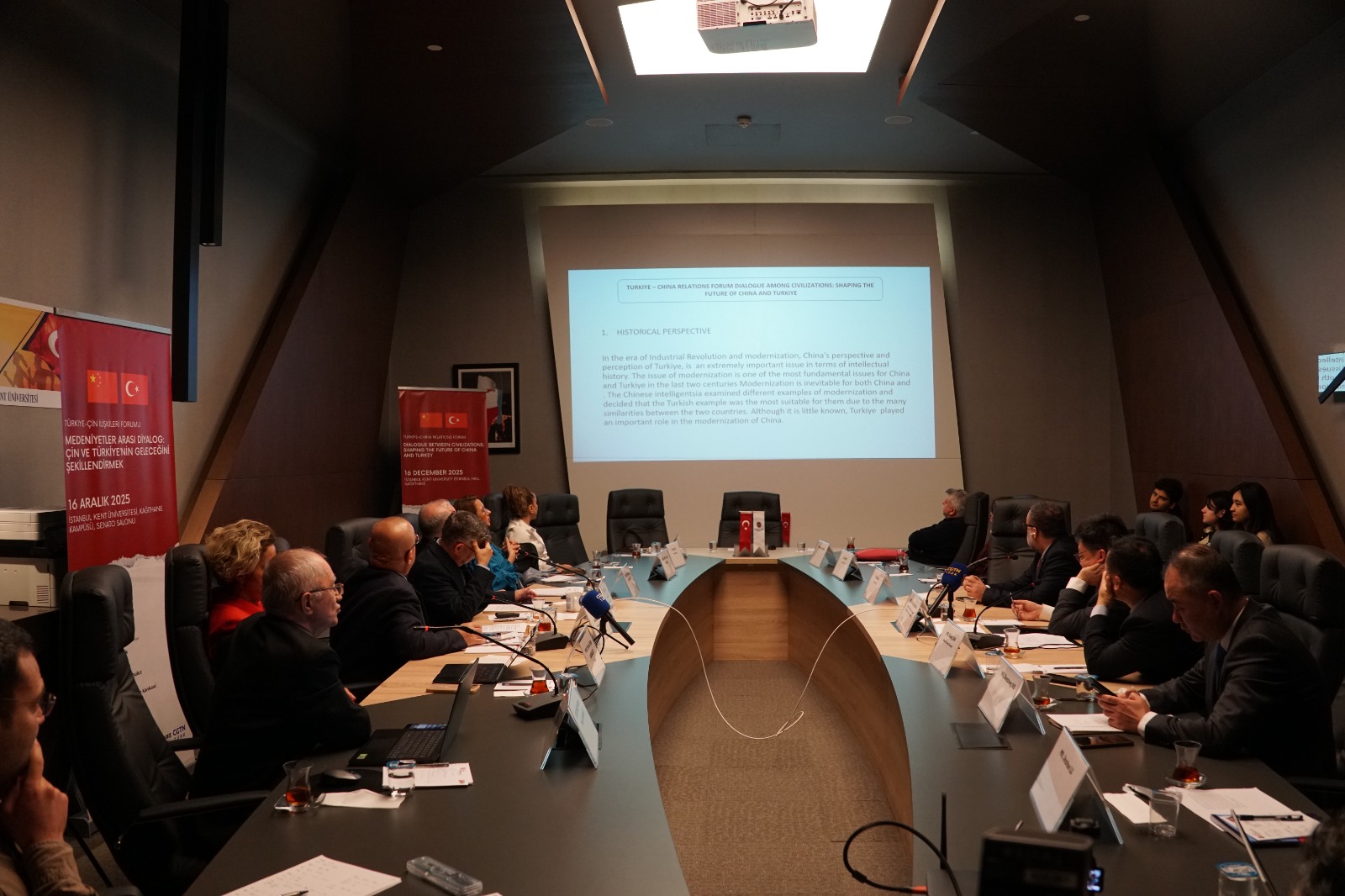 CGTN Türk ile İstanbul Kent Üniversitesi’nin iş birliğinde ve Kent Üniversitesi’nin ev sahipliğinde 16 Aralık Salı günü düzenlenen “Türkiye-Çin İlişkileri Forumu: Medeniyetler Arası Diyalog – Çin ve Türkiye’nin Geleceğini Şekillendirmek” başlıklı çalıştayda, iki ülke arasındaki ilişkiler diplomasi, ekonomi, ticaret, kültür ve akademik iş birliği boyutlarıyla ele alındı.