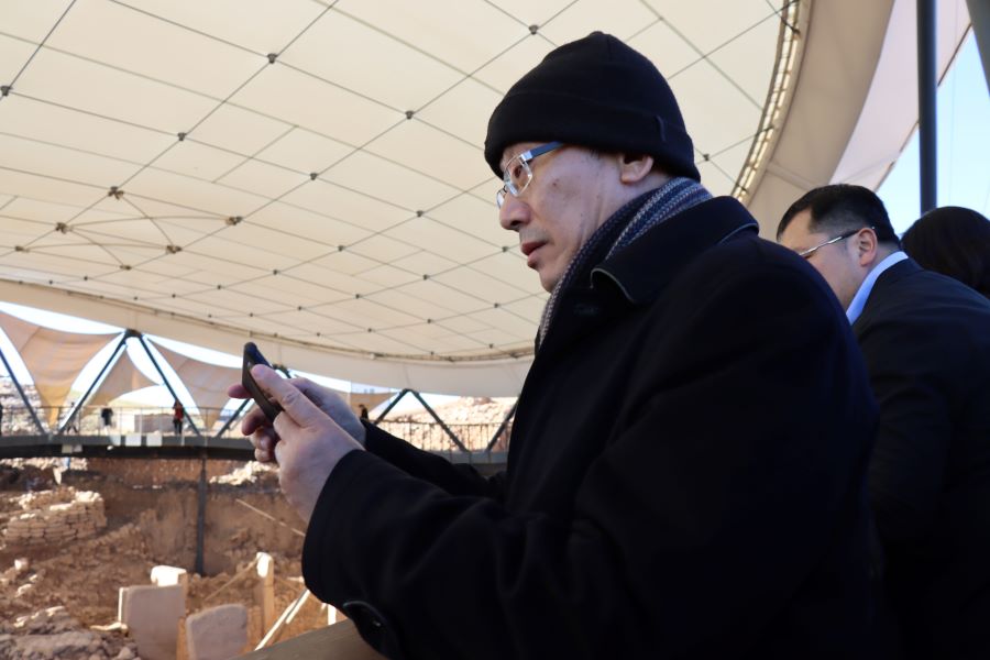 Ziyareti sırasında, Göbeklitepe ve Karahantepe'de neolitik döneme ait eserlerin yer aldığı salonları yakından inceleyen Rao Quan, kendilerine eşlik eden rehberlerden de bilgi aldı.