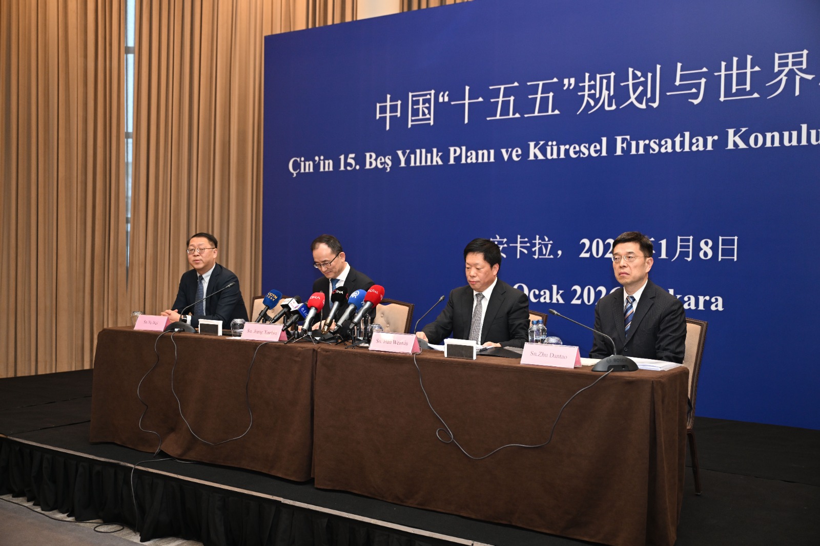 Ankara’da bir otelde düzenlenen “Çin’in 15. Beş Yıllık Planı ve Küresel Fırsatlar” başlıklı tanıtım toplantısına; Çinli ve Türk bürokratlar, iş insanları, akademisyenler ve siyasetçiler katıldı.