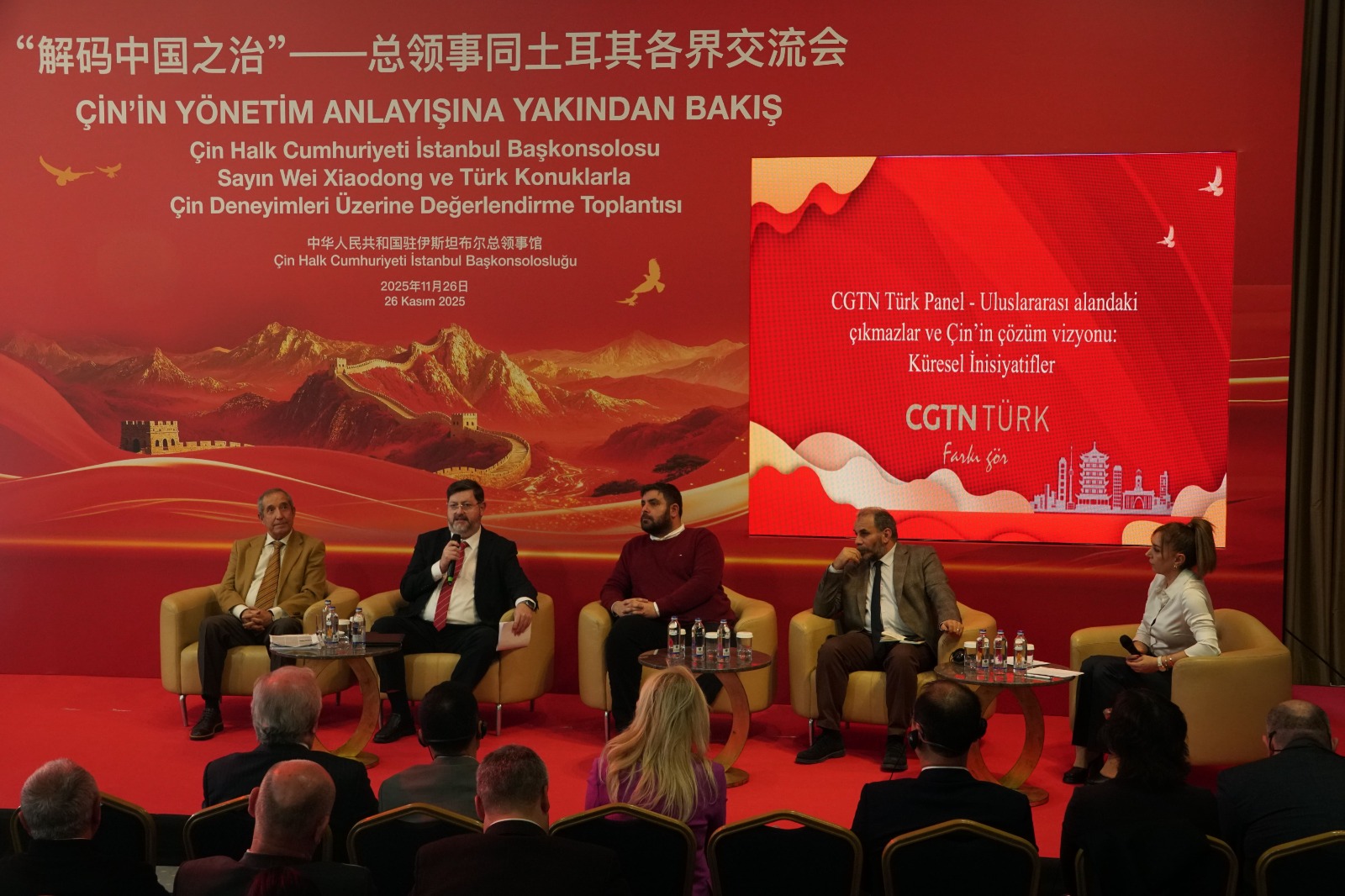 “Çin’in Yönetim Anlayışına Yakından Bakış” ve “Türk Konuklarla Çin Deneyimleri Üzerine Değerlendirme” toplantısı, Çin Halk Cumhuriyeti İstanbul Başkonsolosu Wei Xiaodong’un ev sahipliğinde gerçekleştirildi. Üç oturum halinde düzenlenen etkinlik yoğun bir davetli katılımıyla yapıldı. Panelin açılış konuşmasını Başkonsolos Wei Xiaodong gerçekleştirdi.