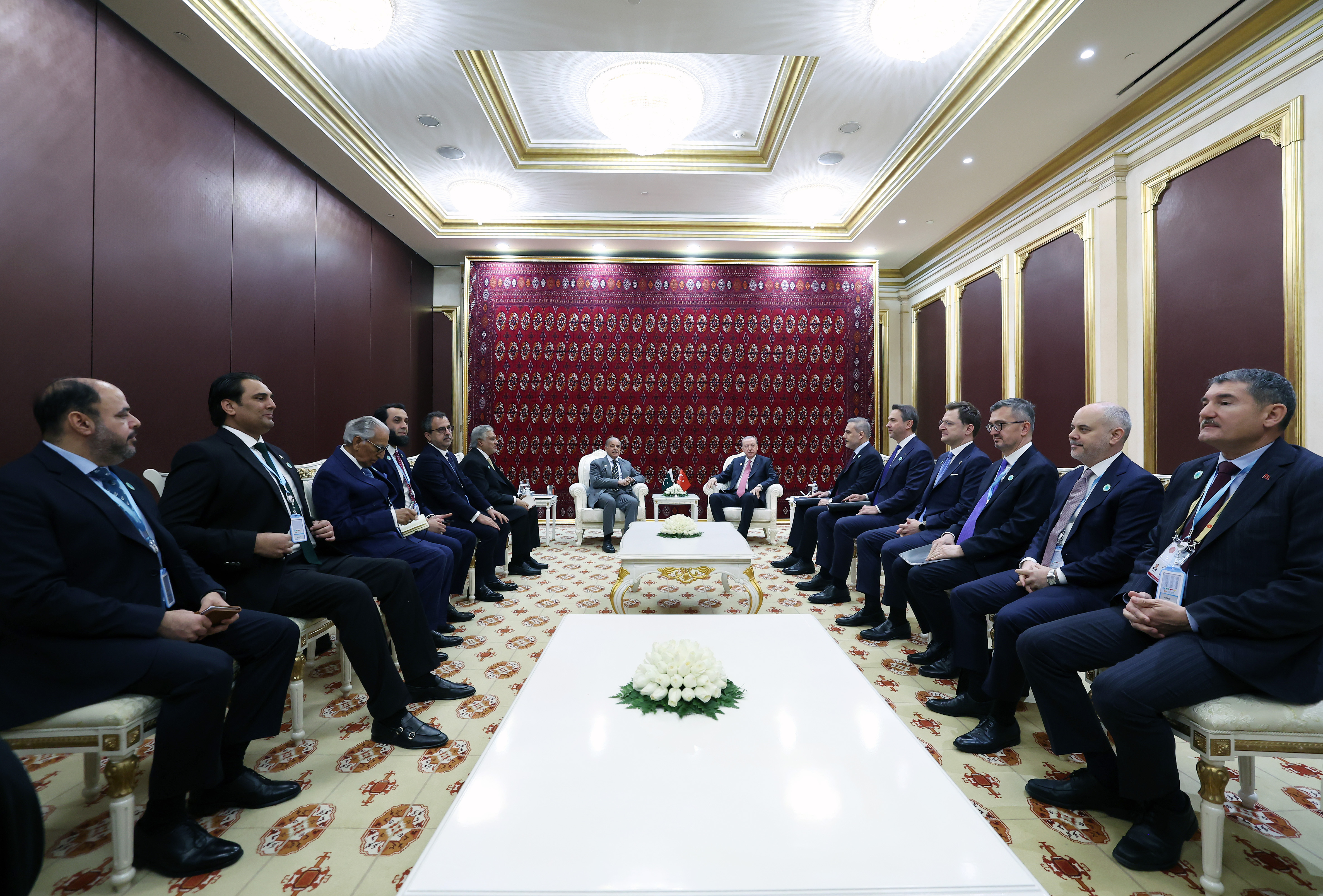 2025 yılının Birleşmiş Milletler (BM) Genel Kurulu kararıyla "Uluslararası Barış ve Güven Yılı" ilan edilmesi ve Türkmenistan'ın daimi tarafsızlık statüsünün 30. yıl dönümü vesilesiyle düzenlenen "Uluslararası Barış ve Güven Forumu"na katılmak üzere Türkmenistan'ın başkenti Aşkabat'ta bulunan Erdoğan, Forum marjındaki temaslarını sürdürüyor.