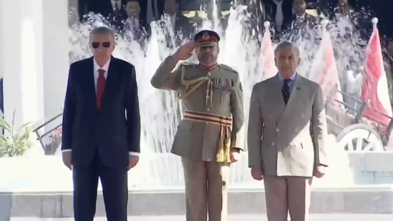 Türk ve Pakistan bayraklarıyla donatılan güzergahtan geçen Erdoğan'ı, Başbakanlık binasına gelişinde Başbakan Şerif karşıladı.