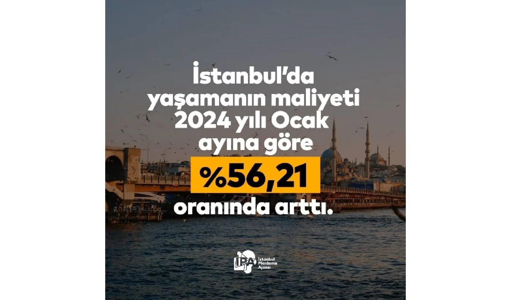 İstanbul Büyükşehir Belediyesi'ne (İBB) bağlı İstanbul Planlama Ajansı (İPA), İstanbul'da Yaşam Maliyeti başlıklı araştırmasının sonuçlarını yayımladı. Buna göre; Ocak ayında 4 kişilik bir ailenin megakentte yaşam mailyeti 82 bin 880 TL oldu. Yaşam maliyetinde bir önceki aya göre yüzde 7,10'luk artış kaydedildi. Bu artış yıllık bazda ise yüzde 56,21 oldu.