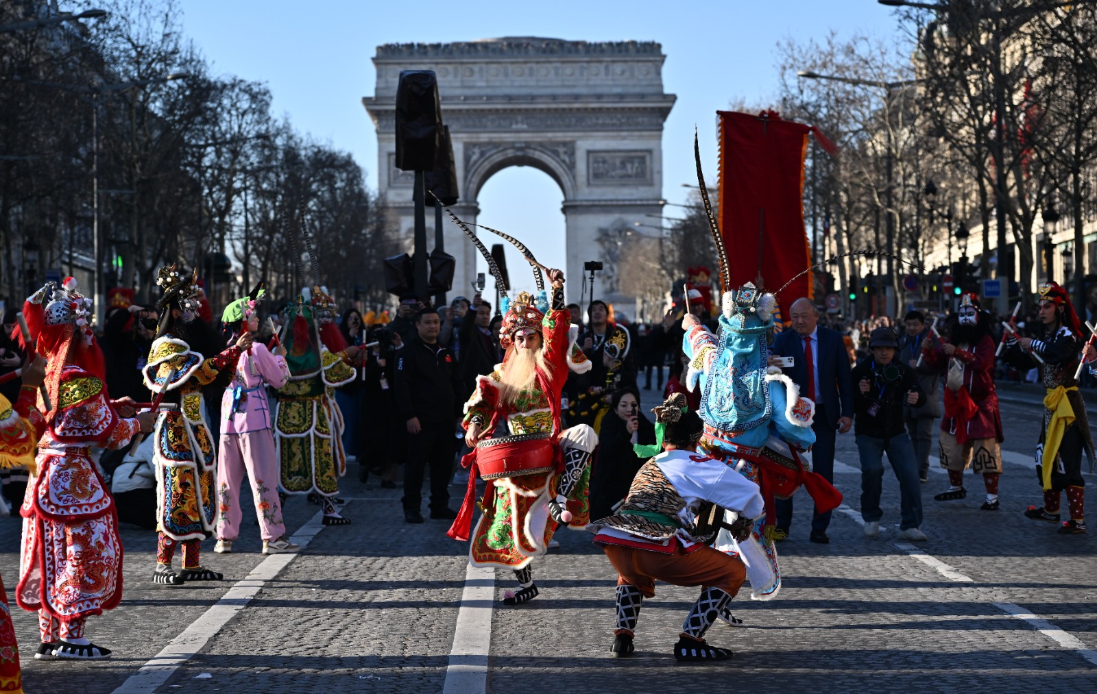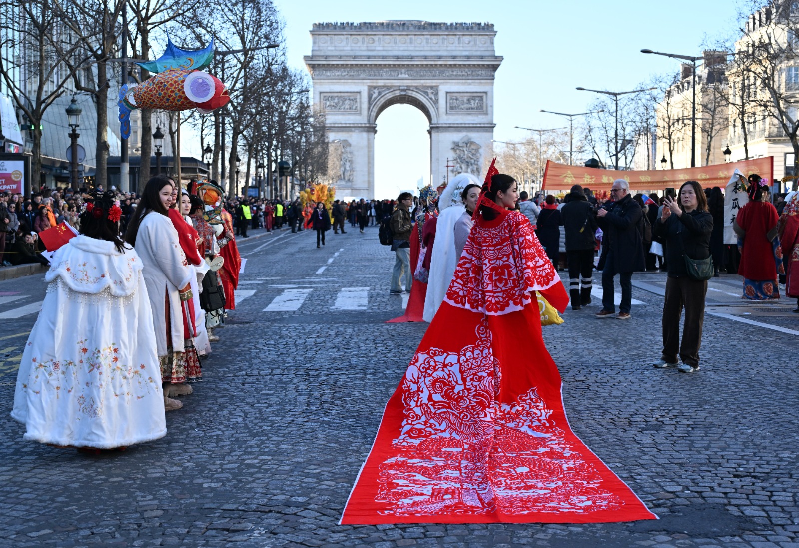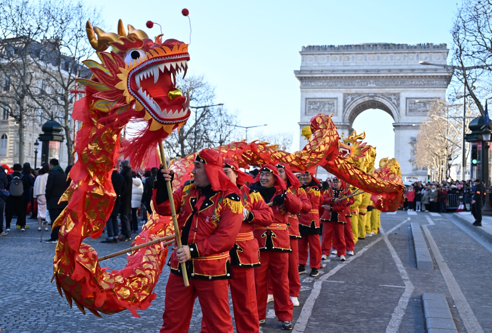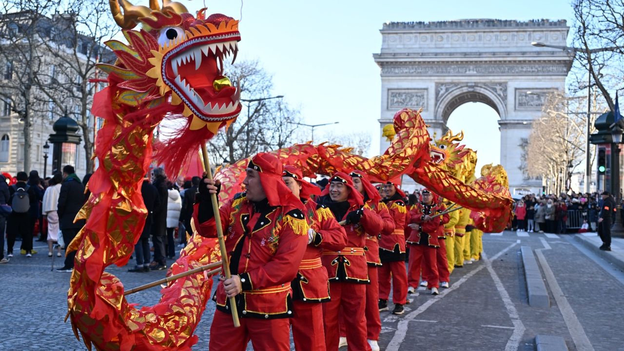 Fransa'nın başkenti Paris'te, geleneksel kıyafetler giyen dansçılar, Çin’in 12 Hayvanlı Ay Takvimi’ne göre Yılan Yılı’nı kutlamak için Champs-Elysees Bulvarı'nda geçit töreni düzenledi. Geçit törenini izlemek için bölgeye gelen ziyaretçiler, dans gösterilerini ilgiyle takip etti.