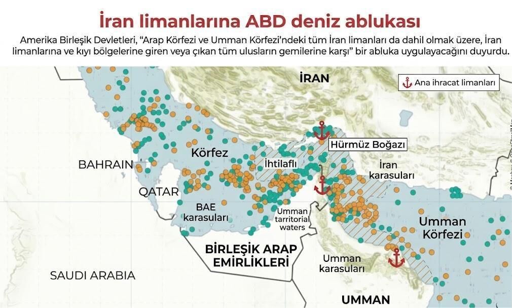 Ablukanın, İran’ın Basra Körfezi ve Umman Denizi’ndeki tüm limanlarına giriş ve çıkış yapan tüm ülkelere ait gemileri kapsadığı ifade edildi. Tahran ise buna karşılık olarak komşu Körfez ülkelerindeki limanları hedef alabileceği uyarısında bulundu.