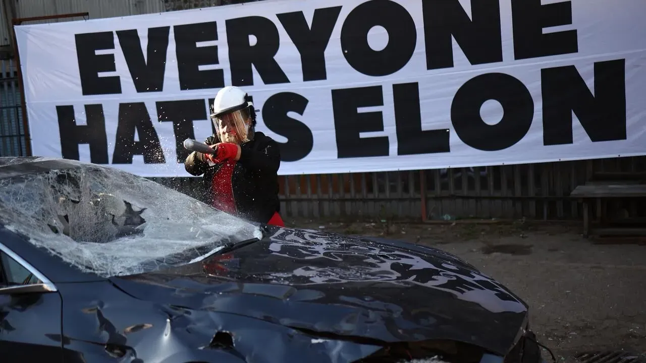 "Everyone Hates Elon (Herkes Elon'dan Nefret Ediyor)" adlı kampanya grubu, servet eşitsizliğine dikkati çekmek için hurdaya ayrılan bir Tesla araçla protesto düzenledi.