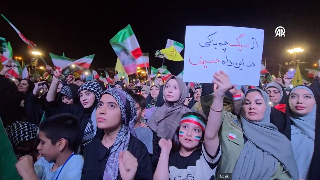 Ellerinde İran bayrakları taşıyan göstericiler, bölgedeki gelişmelere tepki gösterirken, protestolar sırasında geniş güvenlik önlemleri alındığı gözlendi.