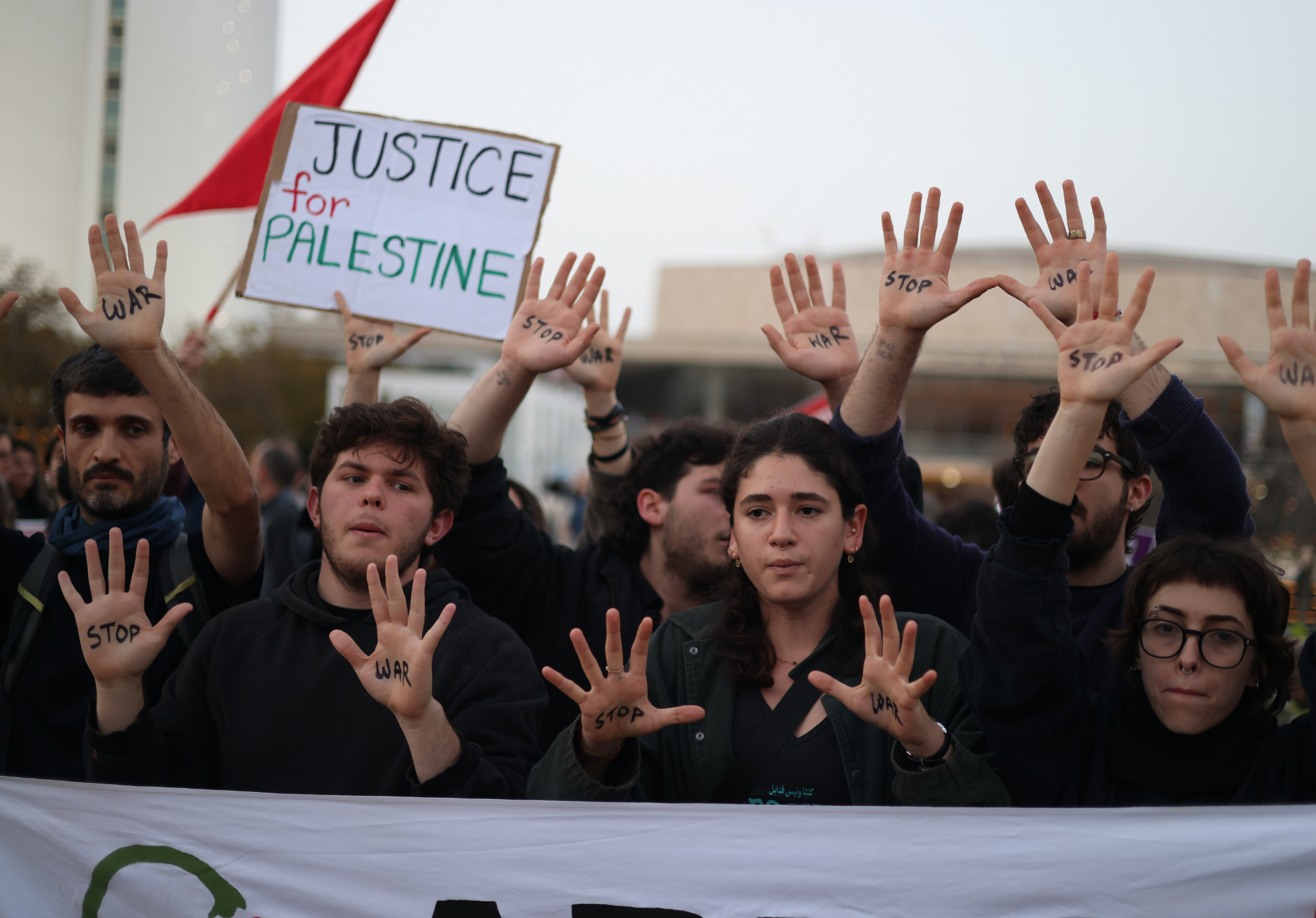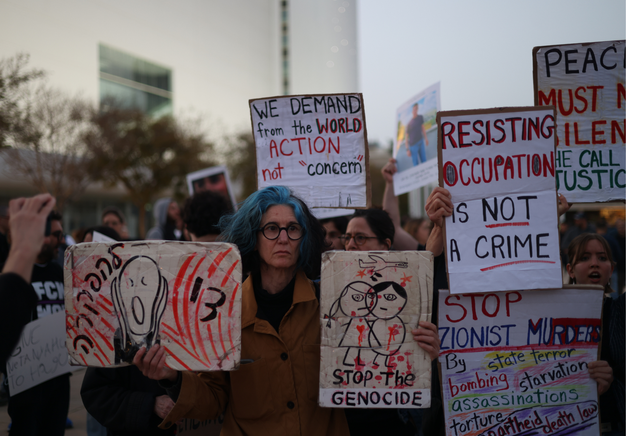 Eylem sırasında protestocular, ABD-İsrail saldırılarını hedef alan dövizler taşırken, Binyamin Netanyahu aleyhine sloganlar attı. Gösteride ayrıca Gazze’de yaşananlara tepki gösterilerek sivil kayıplara dikkat çekildi.