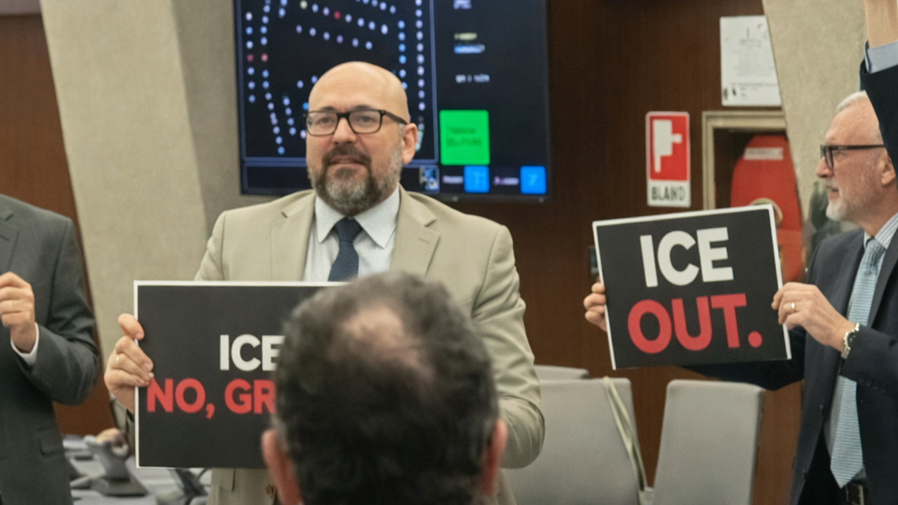 Sosyal medyada yayılan görüntülerde, siyasetçilerin elinde "ICE ajanları dışarı", "Avrupa'da ICE'ye hayır", "ICE mi? Teşekkürler (!)" pankartlarının yer aldığı görüldü.