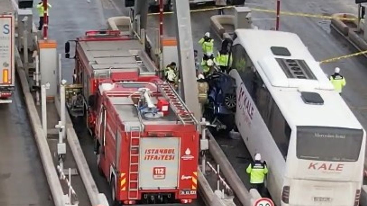 Otoyolun Kınalı Gişeleri'nde, bir yolcu otobüsü geçiş sırasında otomobile çarptı.