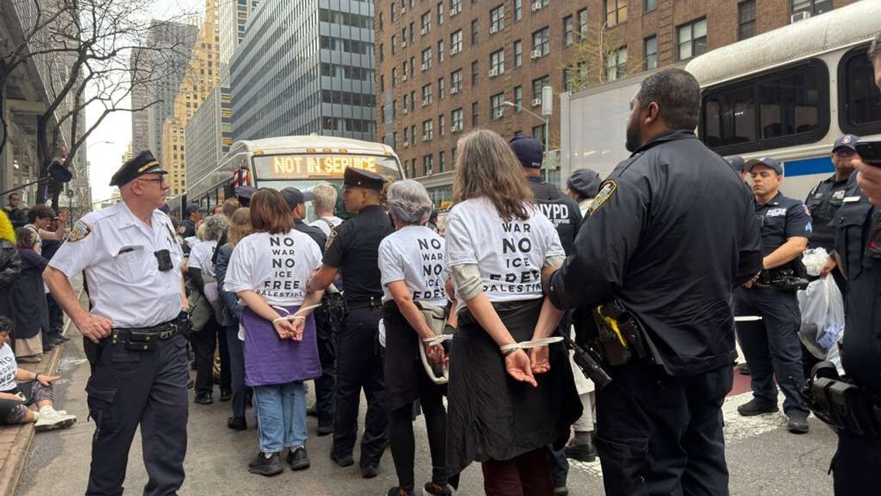 Polis ekipleri, Manhattan’da yolu ve bina girişlerini kapatan göstericilere müdahale ederek çok sayıda kişiyi gözaltına aldı.