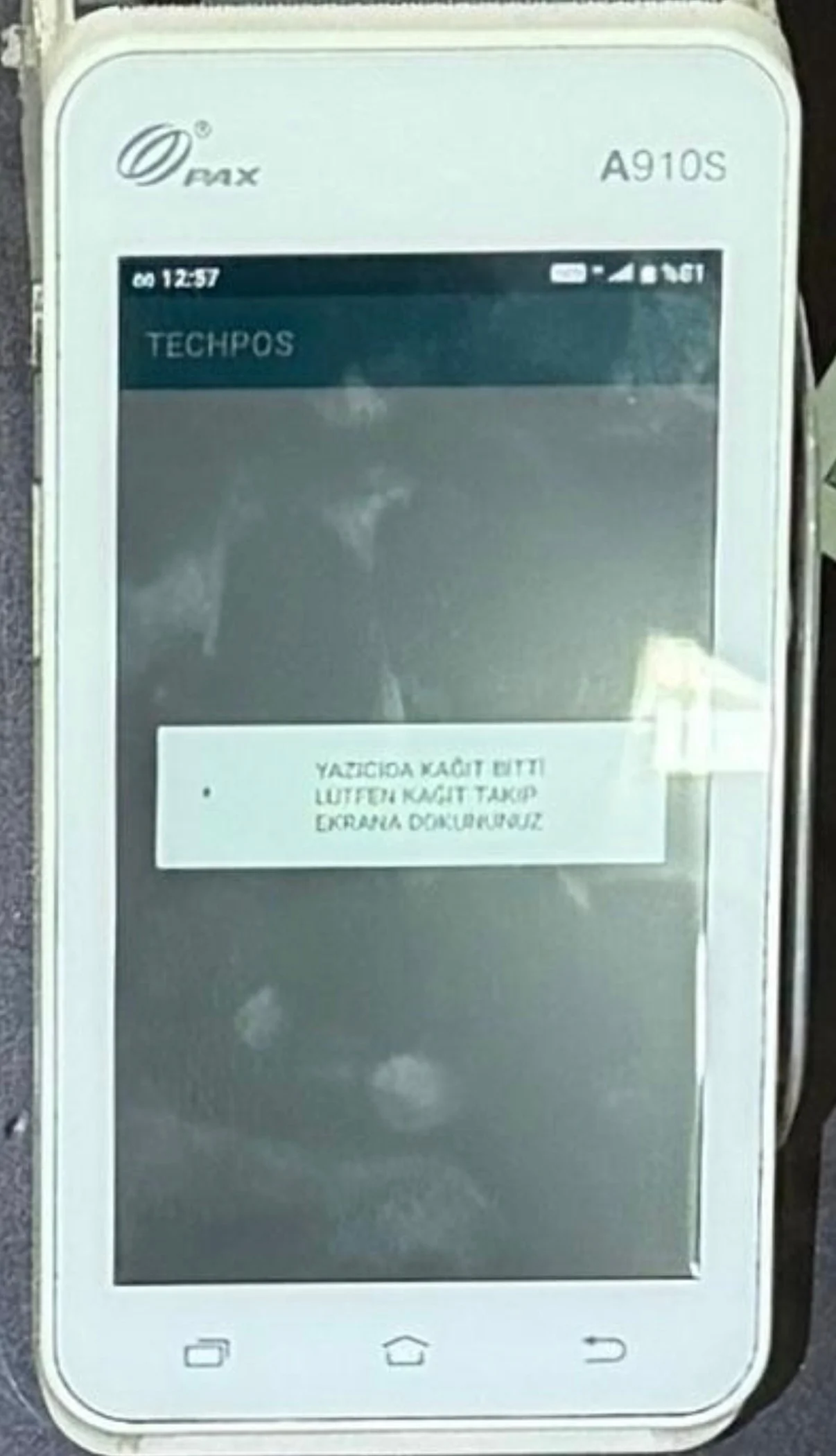 Araçta bulunan POS cihazının ekranında yer alan “kağıt bitti” uyarısı, ekiplerin dikkatini çekti ve detaylı inceleme başlatıldı.