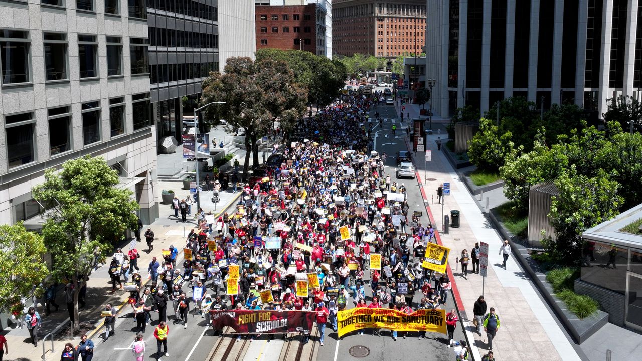 ABD'nin California eyaletinin San Francisco kentinde Donald Trump’ın eğitim bütçesinde yaptığı kesintileri protesto etmek amacıyla binlerce öğretmen Embarcadero Plaza’da toplandı. Bir araya gelen öğretmenler pankartlarla yürüyüş gerçekleştirdi.