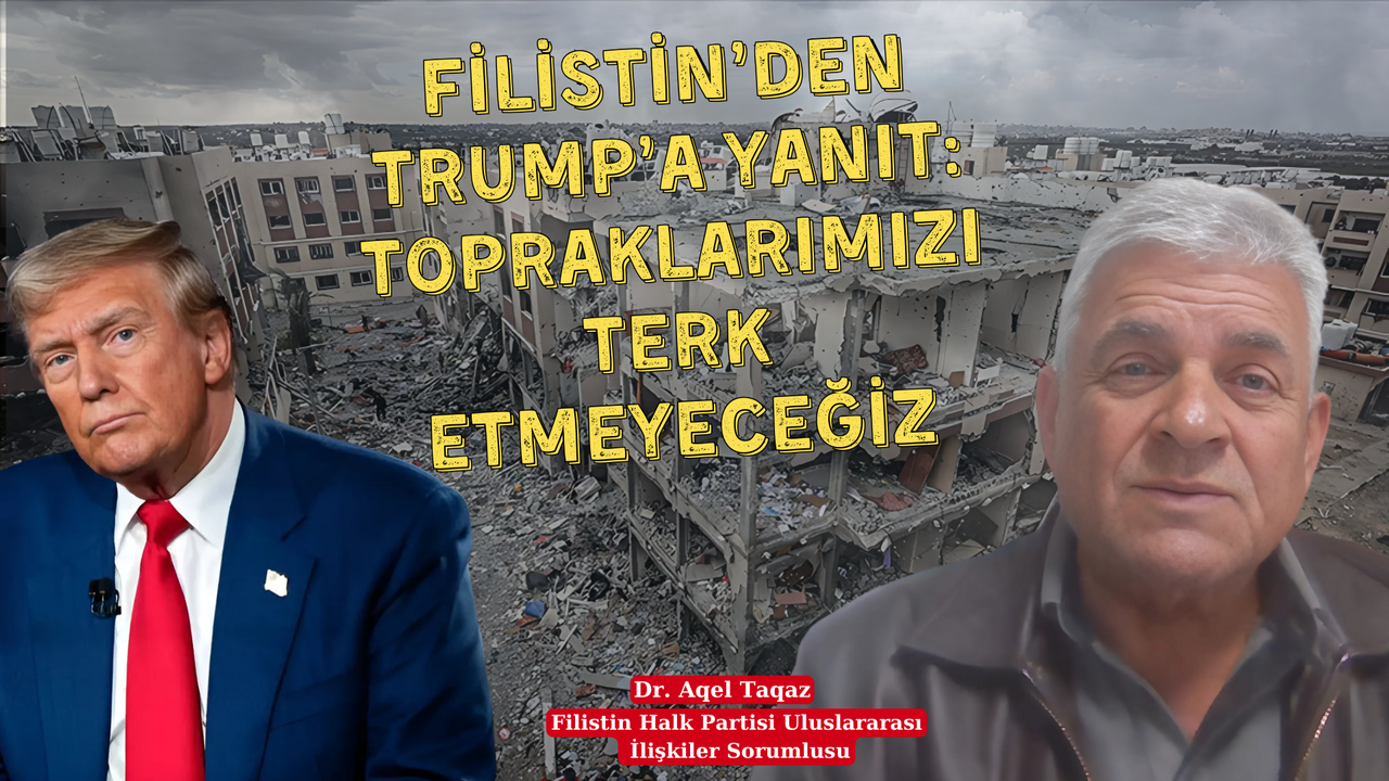 Filistin Halk Partisi Uluslararası İlişkiler Sorumlusu Dr. Aqel Taqaz, CGTN Türk’e verdiği röportajda, ABD Başkanı Donald Trump ve İsrail Başbakanı Binyamin Netanyahu’nun Ortadoğu politikalarını sert bir dille eleştirdi. “ABD, İsrail’in genişleme politikalarını destekleyerek uluslararası hukuku ihlal ediyor” diyen Taqaz, Filistin halkının asla topraklarını terk etmeyeceğini vurguladı.